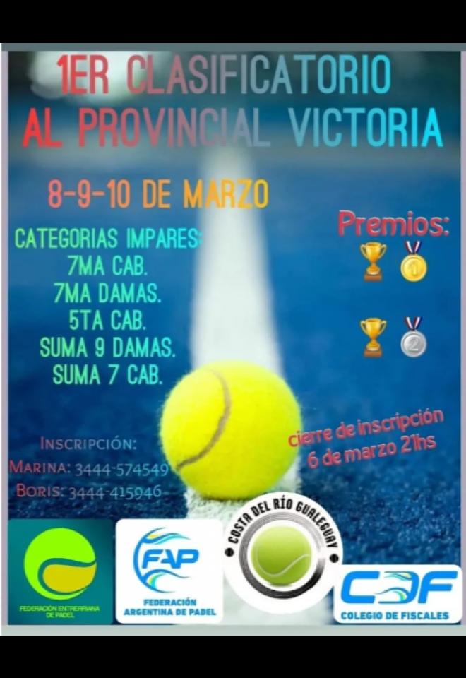 »» Evento: 1er Clasificatorio al Provincial AVP - IMPARES »» Localidad: Gualeguay »» Fechas: 08/03/2024 al 10/03/2024